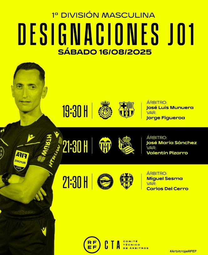 8月15日讯 西甲官方公布了北京时间周日凌晨3场比赛的裁判安排,其中穆努埃拉将执法巴萨客战马洛卡的比赛。